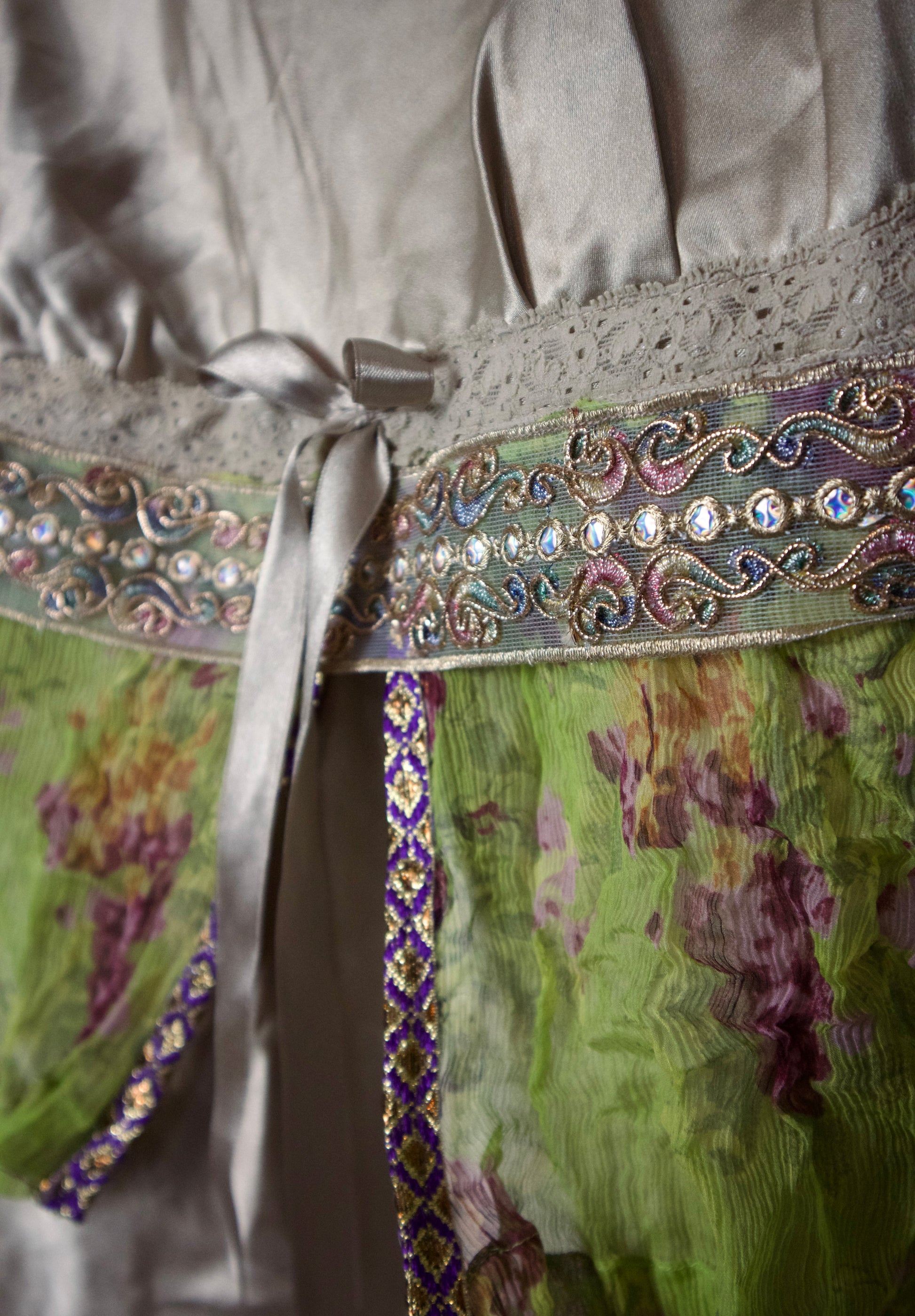 Vintage Top (Upcycling) in beige mit bunten Akzenten und Spitze am Rücken.