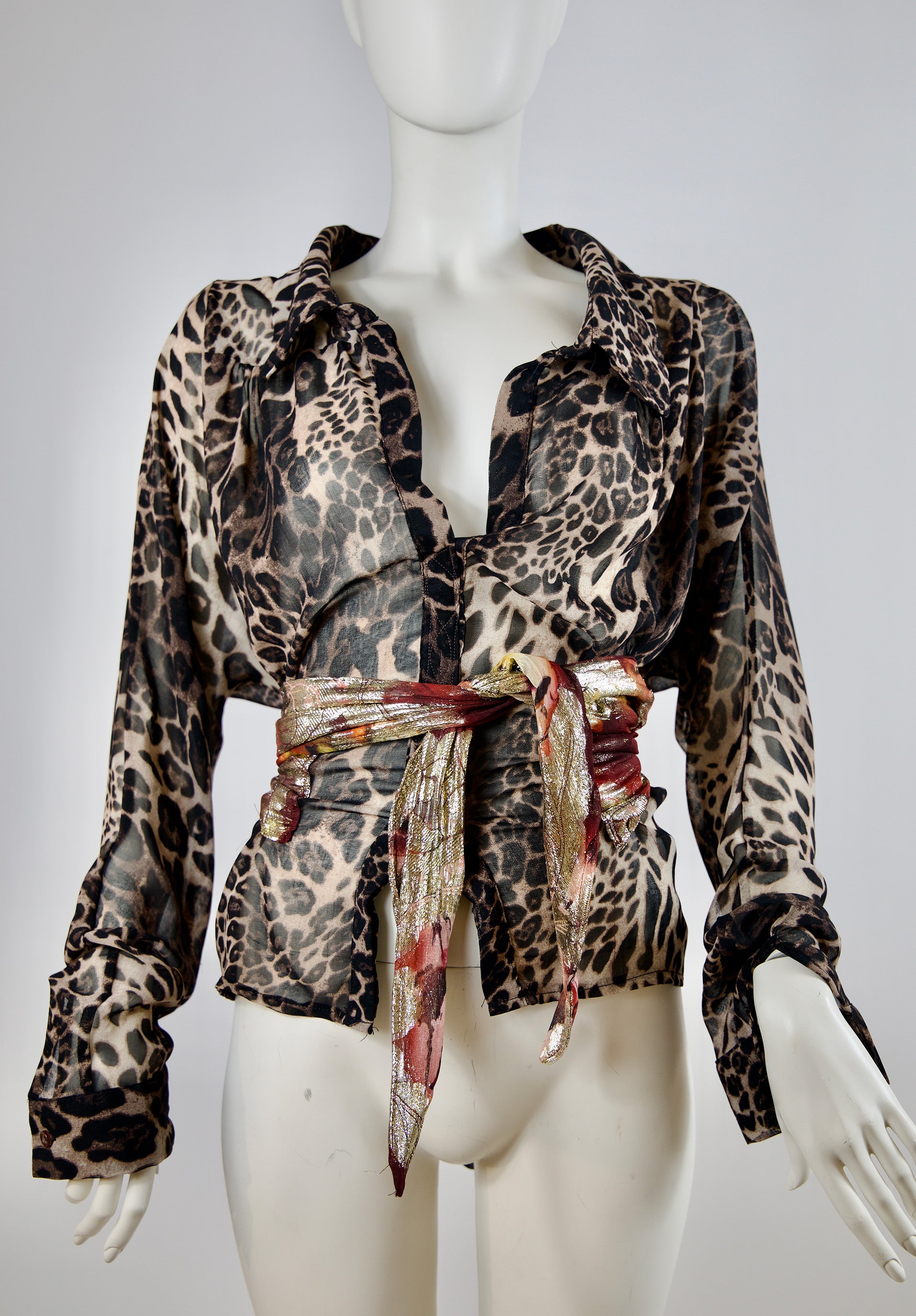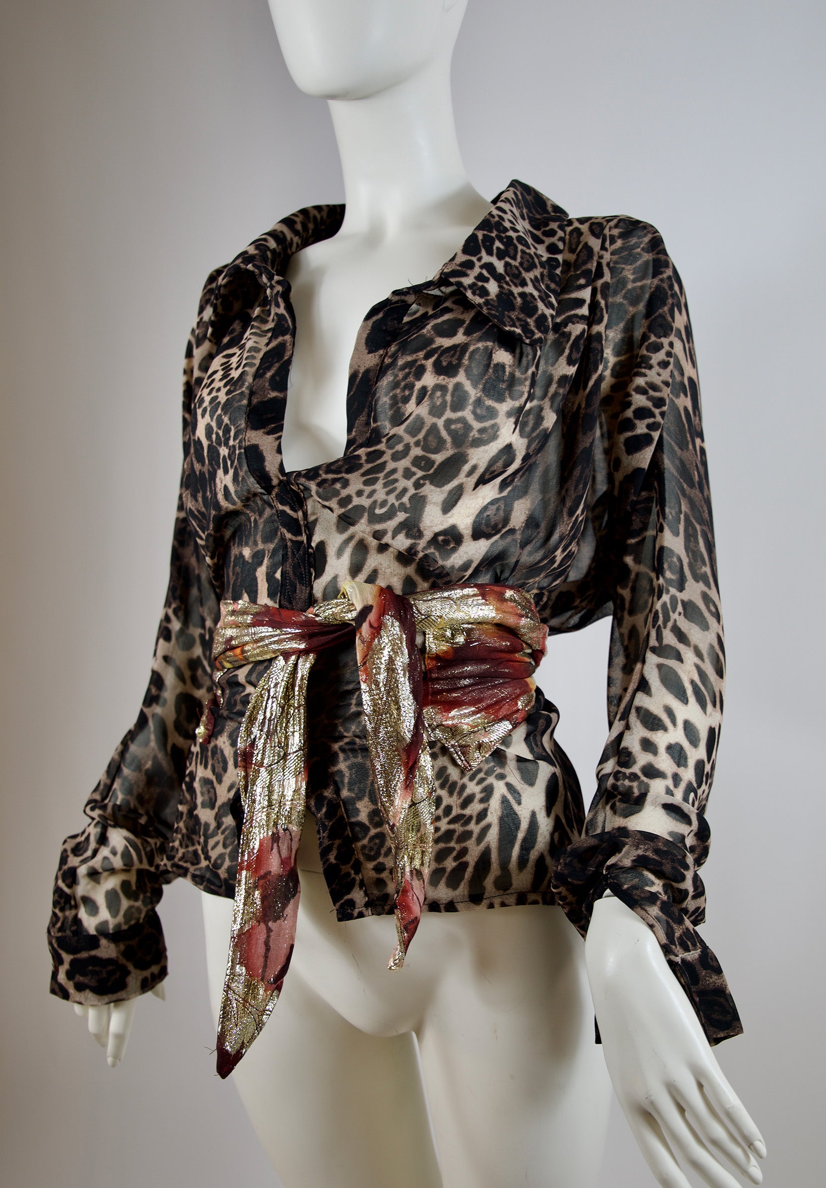 Bluse mit Leoparden Muster mit Schnürung an der Taille.