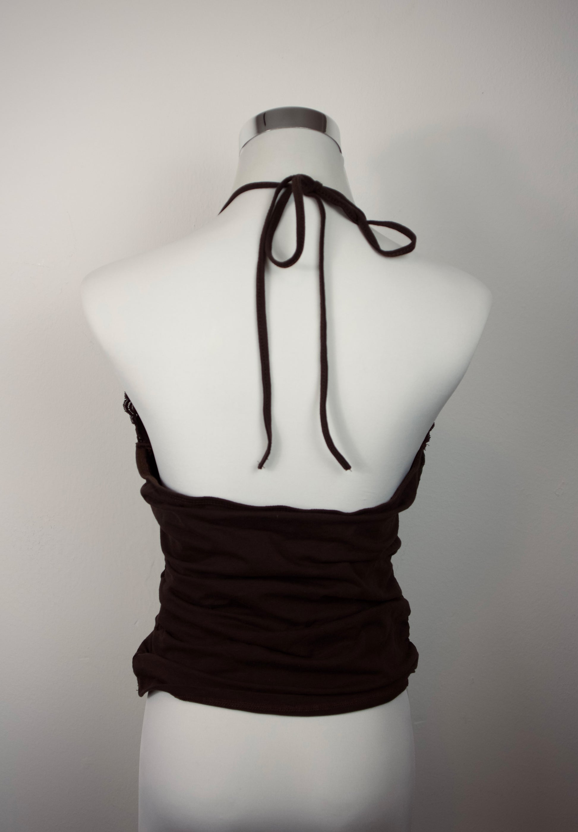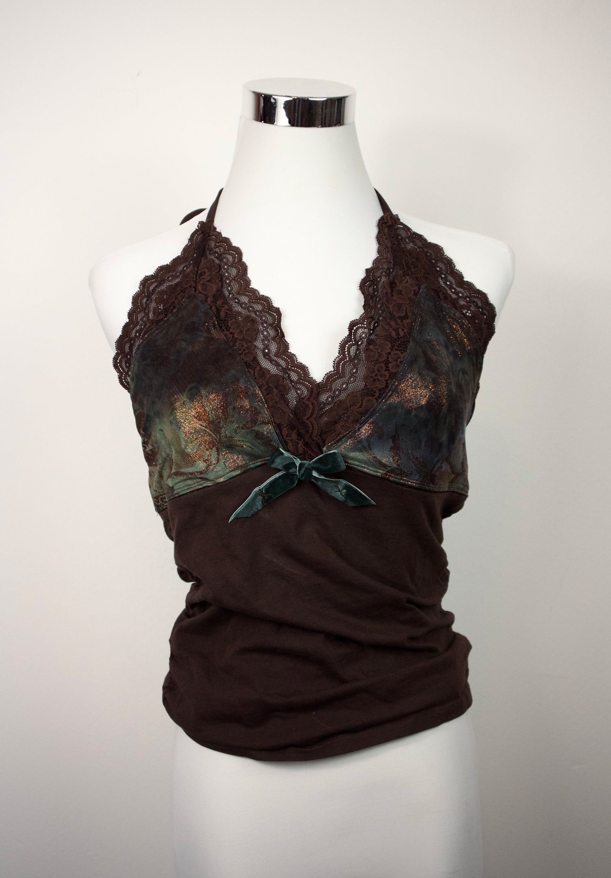 Vintage Top (Upcycling) mit Neckholder in der Farbe Braun mit schimmernden Akzenten.
